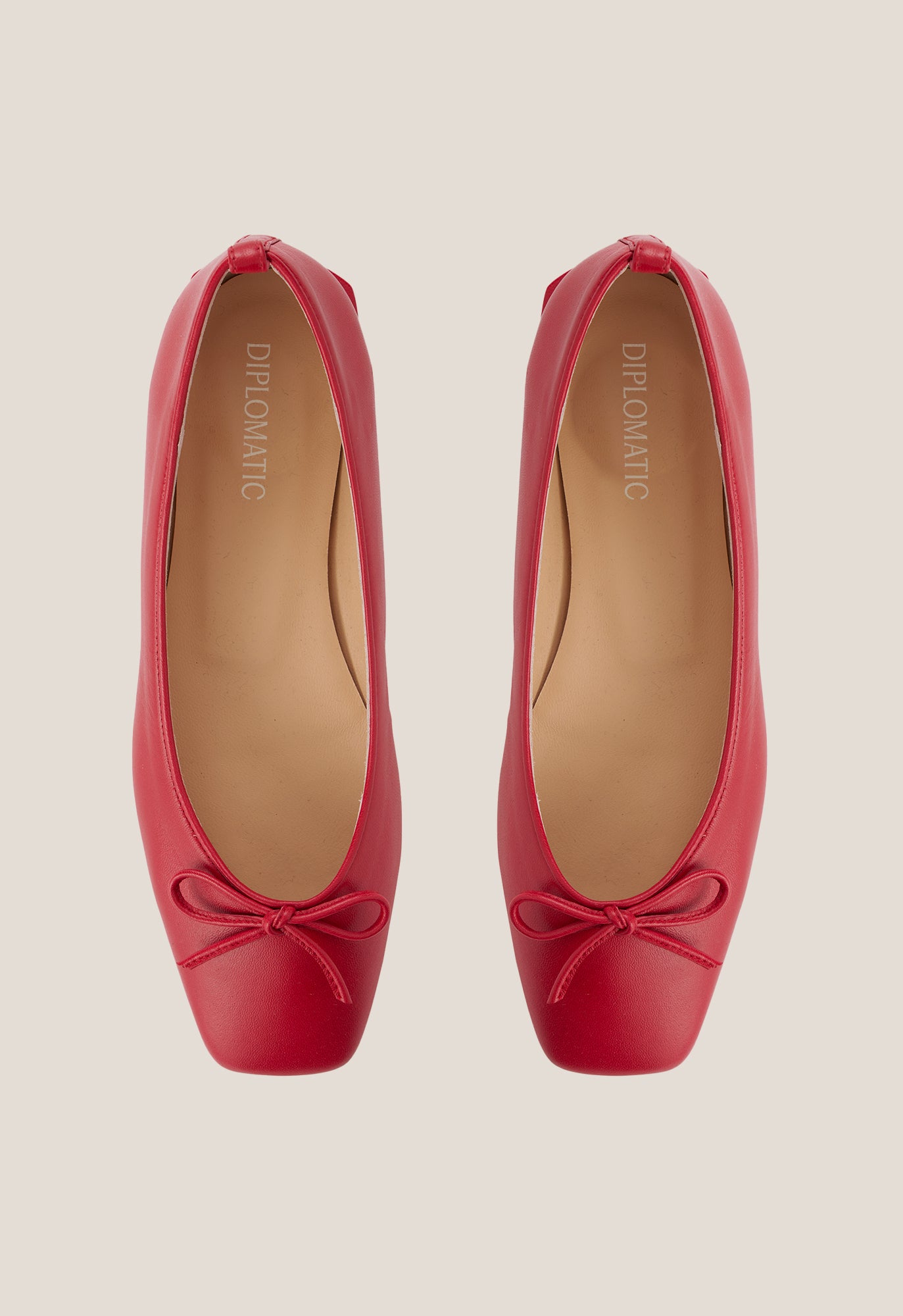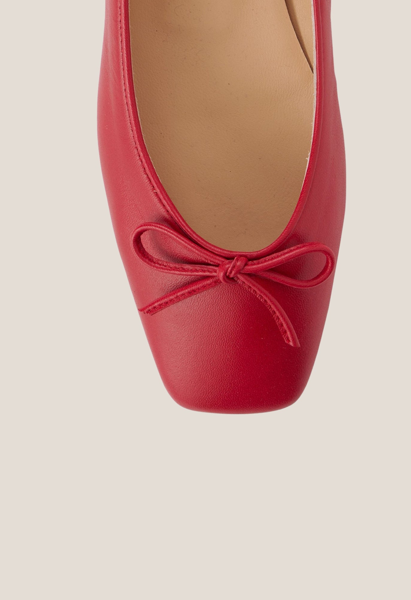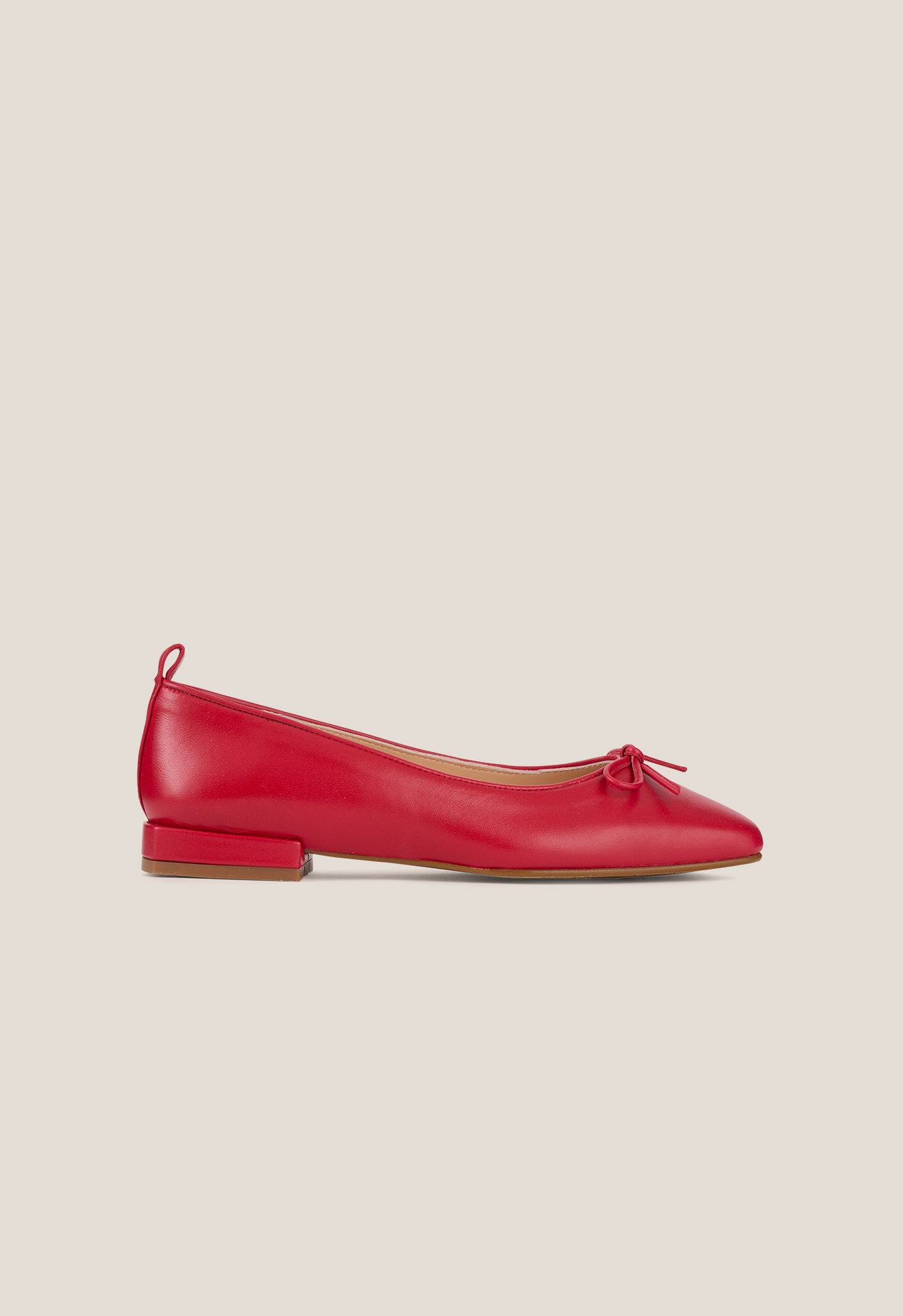 +34915369065Ballerina flat in cherry calfskin. Square toe and low heel. Finished with a sole. non-slip rubber.