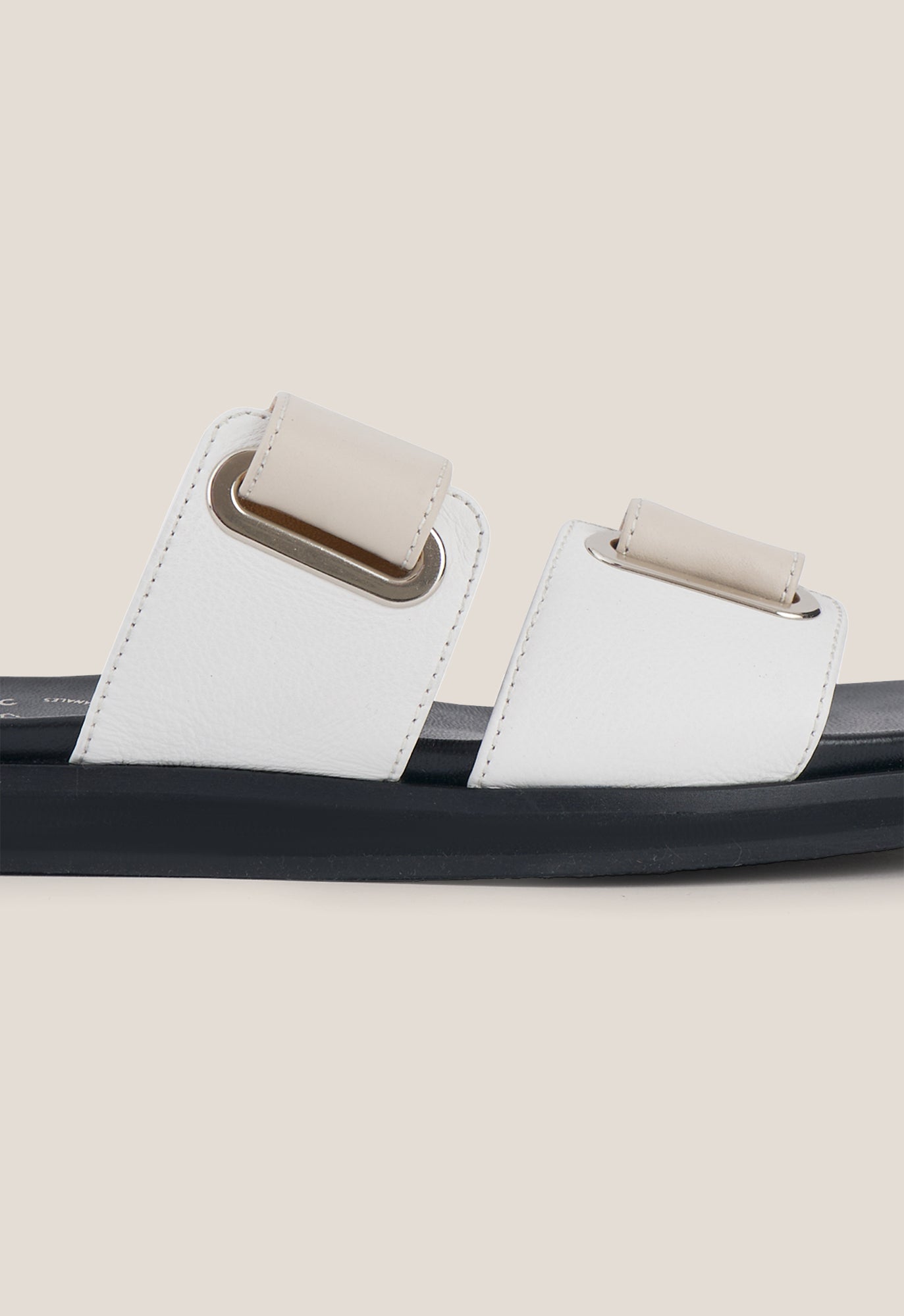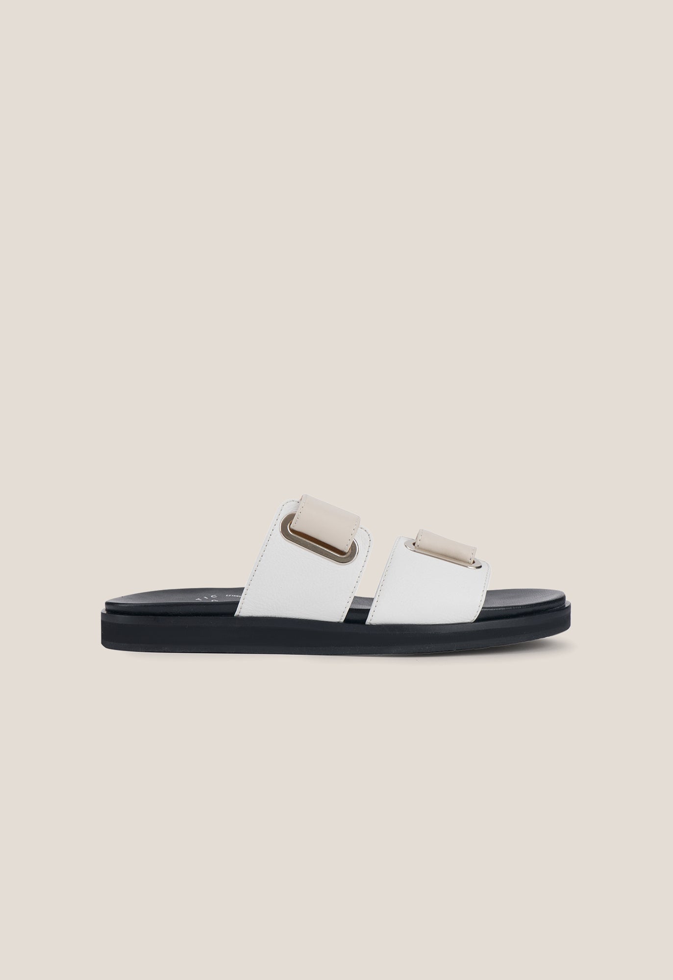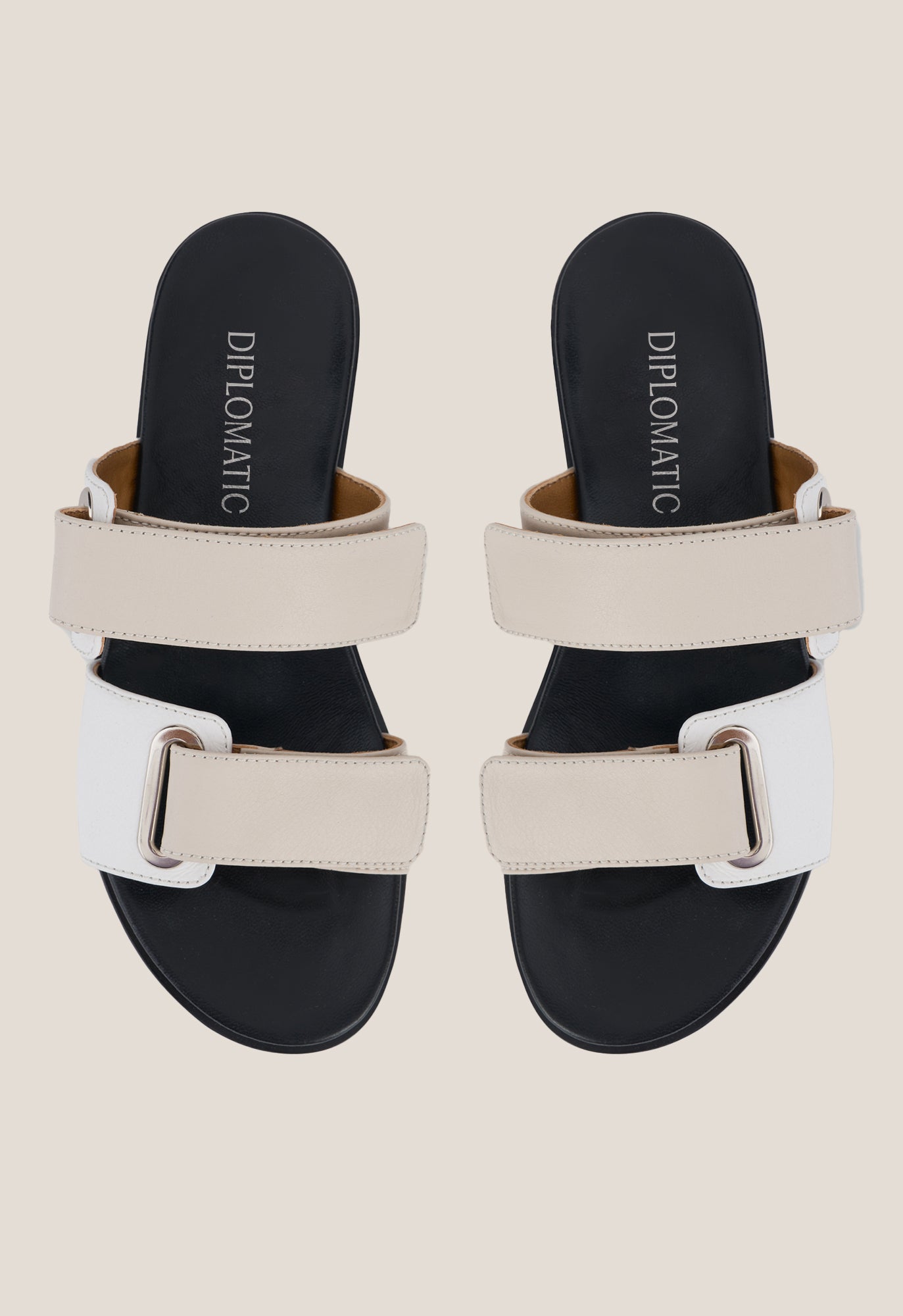+34915369065Flat sandal with padded front straps in black and cream calfskin.
