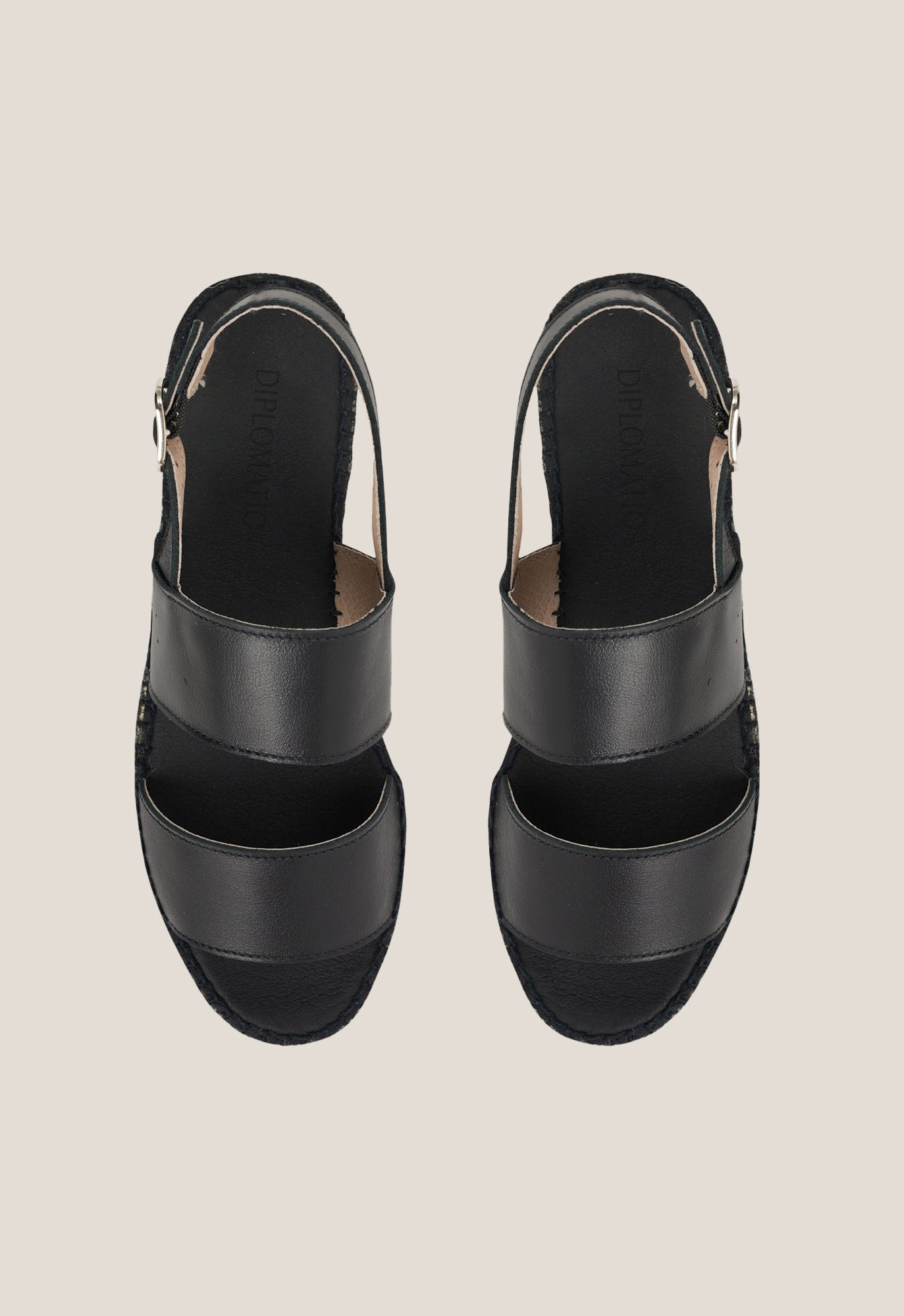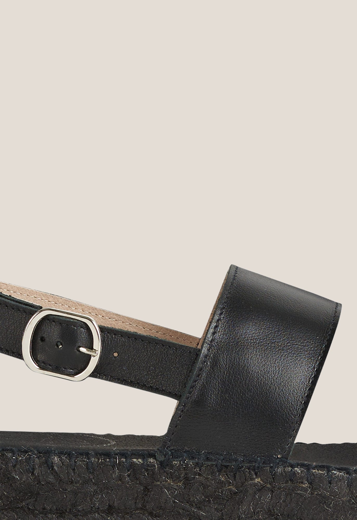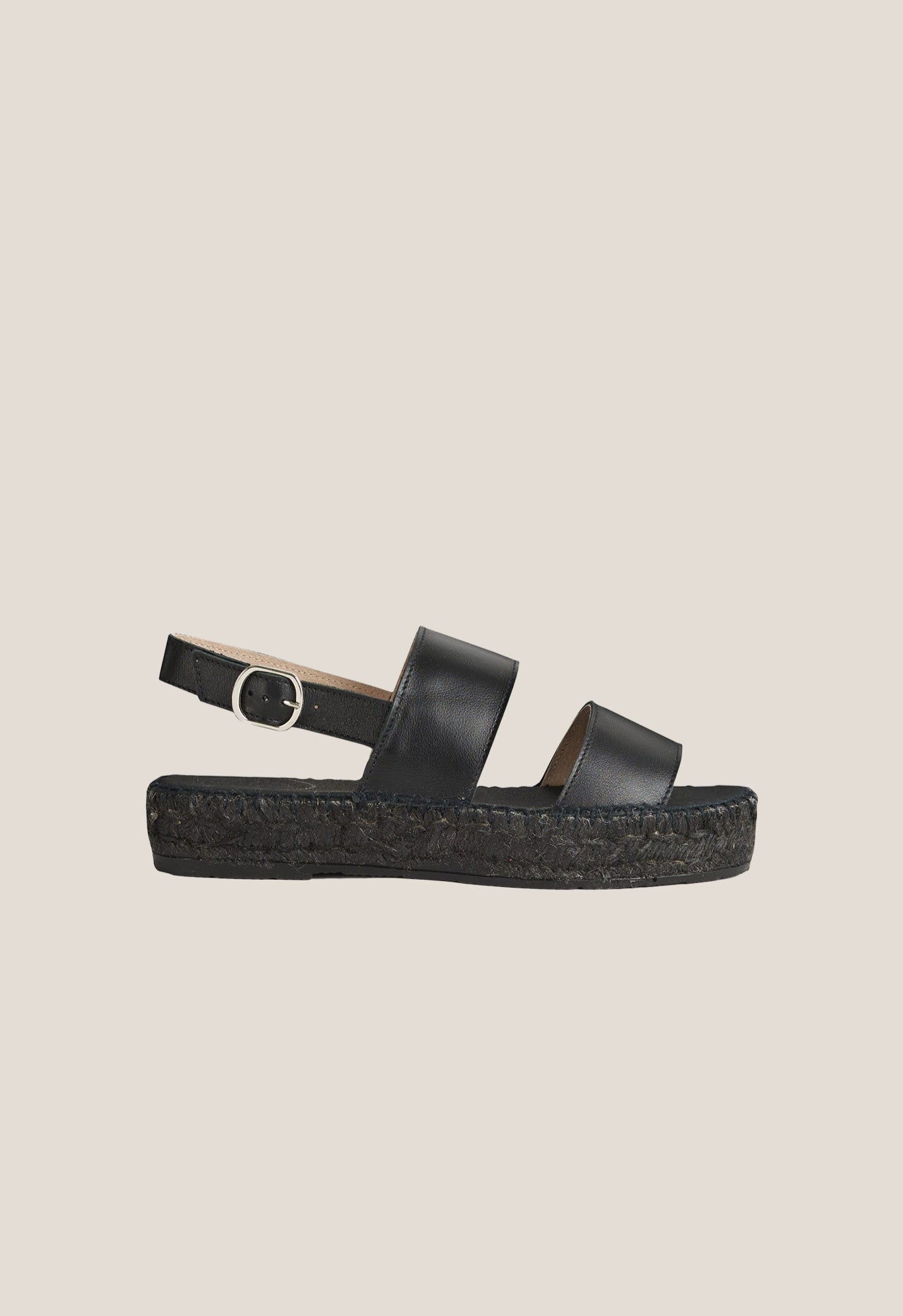+34915369065Open espadrille in black calfskin with two straps across the instep and buckle closure at the ankle.