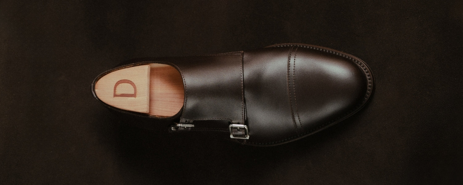 Zapato de dos hebillas con puntera partida liso en antic color marrón. Horma estructurada para calce idóneo.