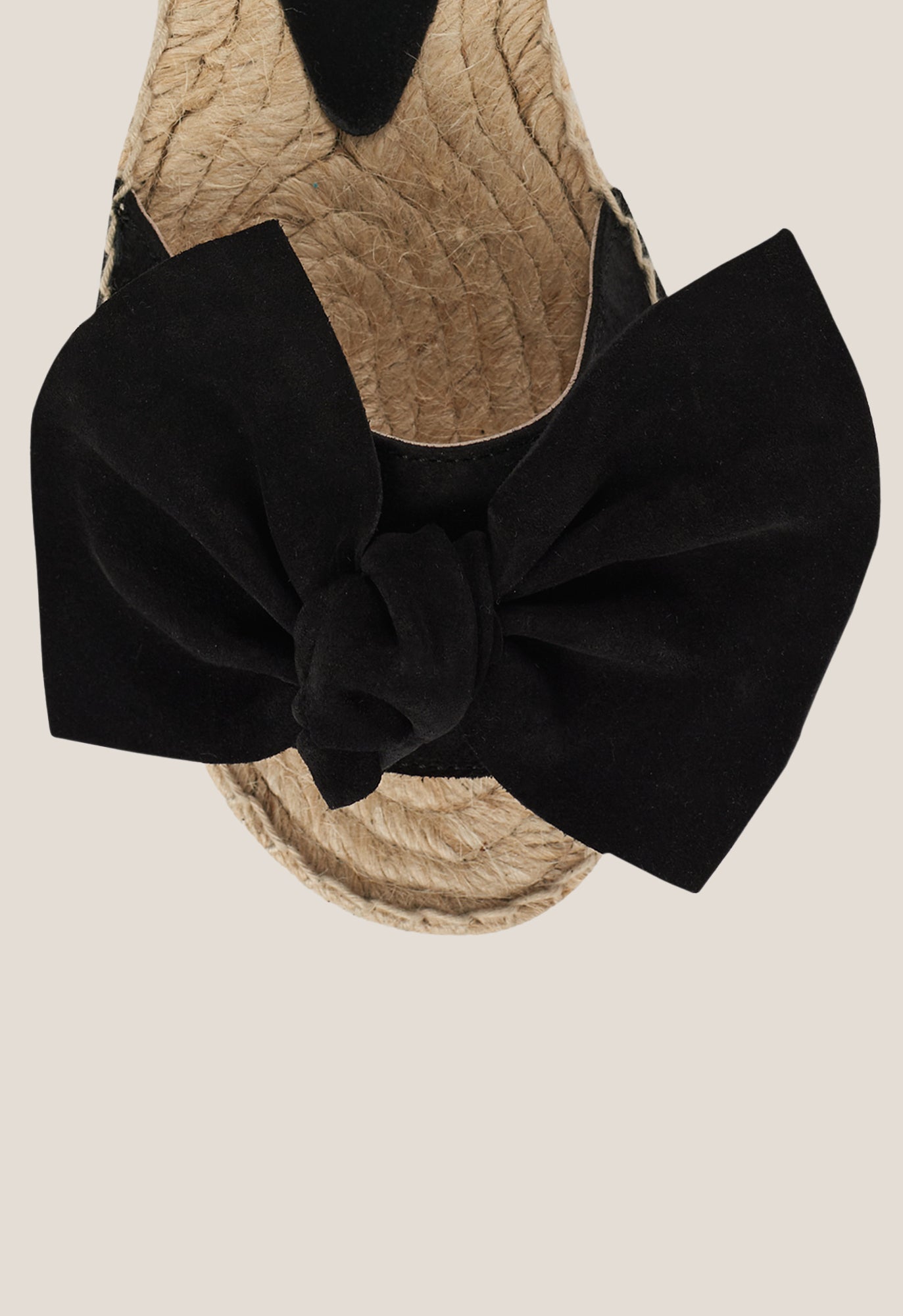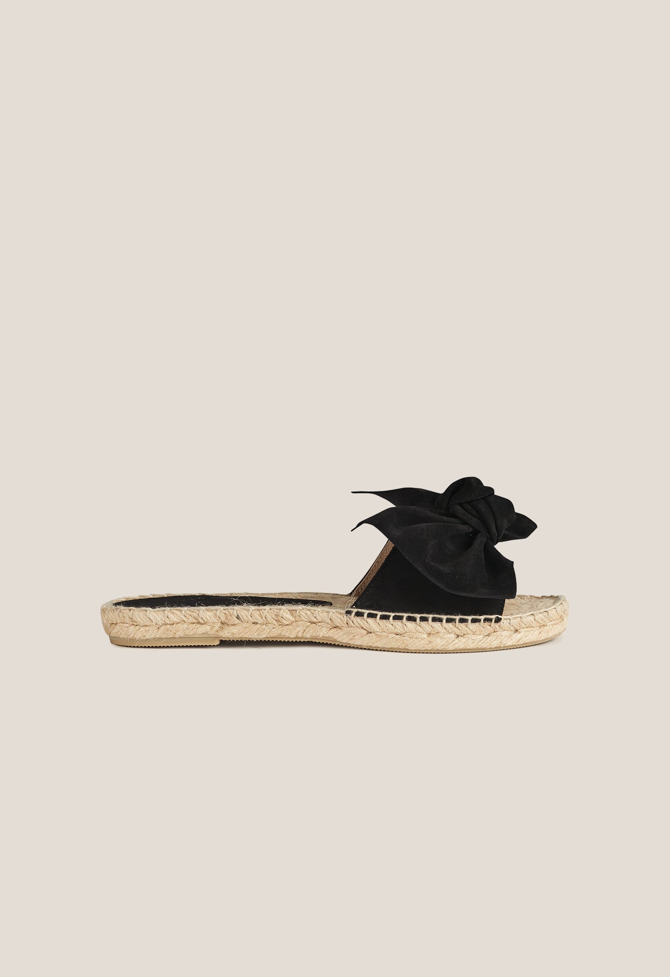 +34915369065Alpargata abierta con una tira en el empeine de ante color negro. Acabado con una suela de goma antideslizante.
